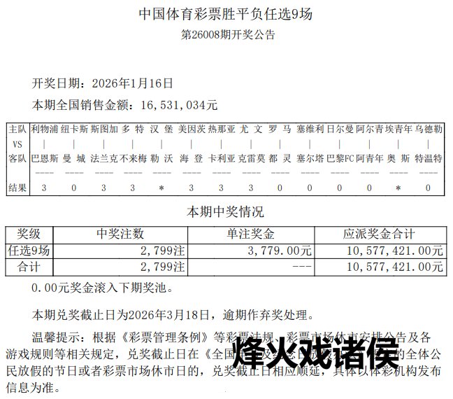 北京期间1月16日PG电子,赢输彩第26008期任九开奖效能揭晓。本期任九共开出2799注,单注奖金3779元。本期任九投注总和为16,531,034元。